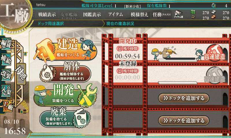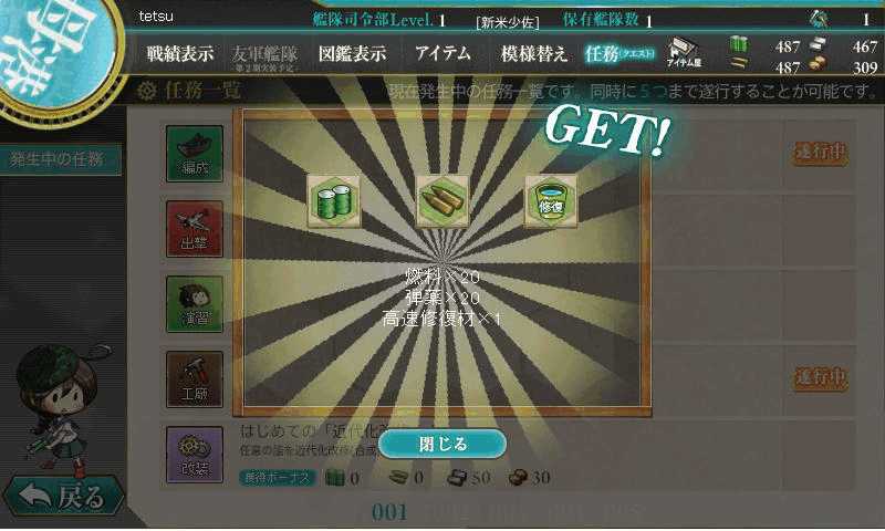 中には日付が変わると復活する任務もあるので、毎日こなしてコツコツ資材を稼ぐこともできる