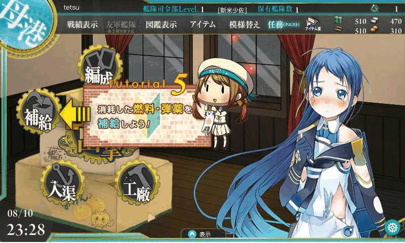 ゲーム画面の下にヘルプと用語集が用意されているので基本的な情報は確認できるのだが、特殊なアイコンの説明がなかったり、攻略に役立つ情報、例えば資材をどれだけ投入すればどんな艦娘が建造できるのかといったことは書かれてないので、何もかもが手探りな状態から始まる