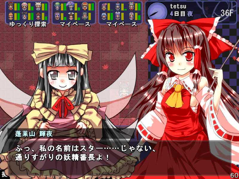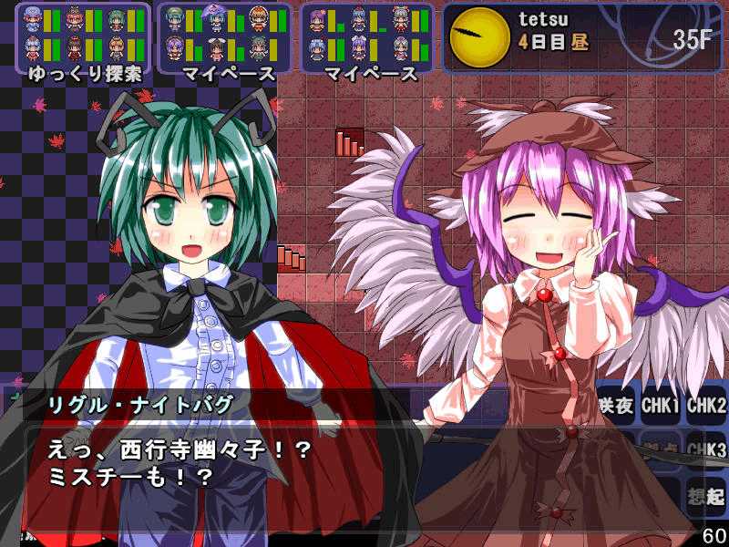 幽々幻樂団で35Fへ行くとリグルとボス戦 ダブルスポイラーの次は東方地霊殿やってたりしますw