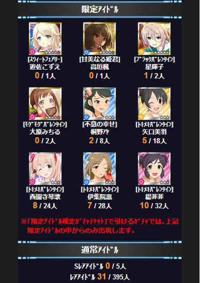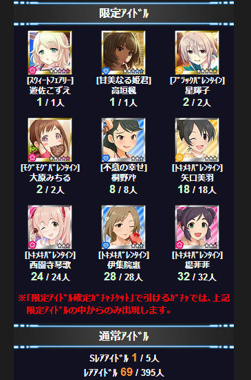 このリミテッドガチャは箱の中からくじ引きを引くように、空になるまで引き続けることで、全てのアイドルを引けることが保証されるというのが特徴