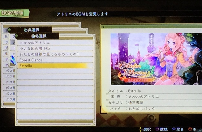 なんと今作を含めた歴代アトリエシリーズ5作品のBGMが収録されており、アトリエや町中、フィールドや戦闘BGM、さらにはラスボス戦に至るまで、ゲーム中に再生されるすべてのBGMを他のBGMに変更することが出来るんです!!