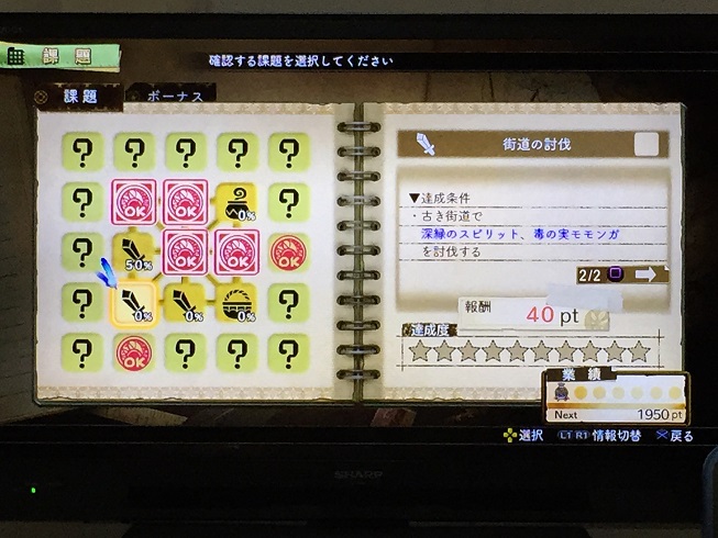 大課題を達成すると、それまでは見られなかった小課題の達成条件が開示されるので、とりあえずはこの小課題の達成を目指して行動します