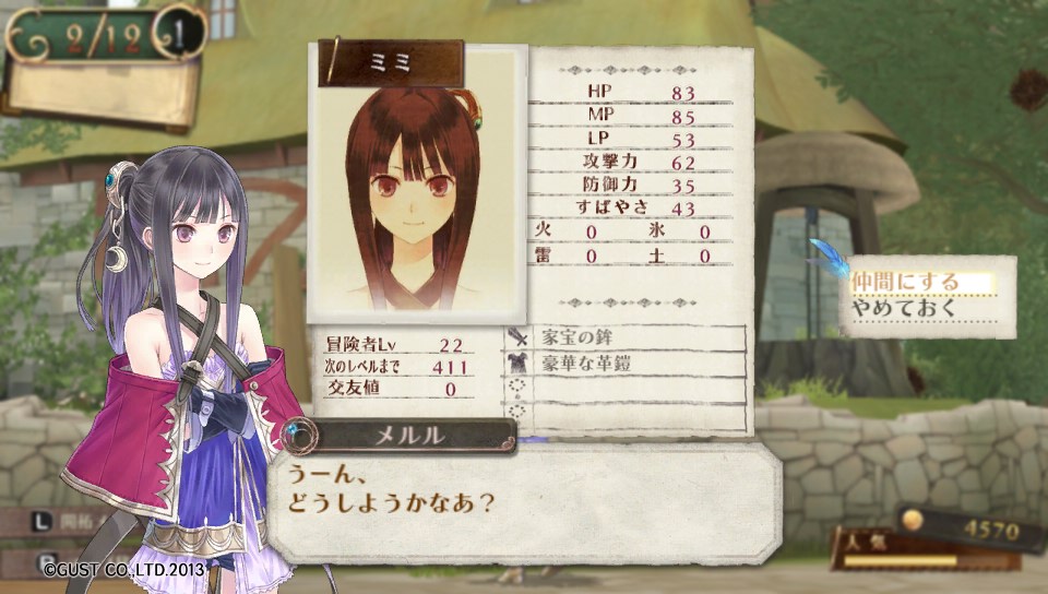 まだ新規加入したキャラを外に連れ出す前なのに次々仲間が増えるんだけど、メルルの護衛として連れていける仲間は2人までなので、誰を連れていくか本当に悩まされます