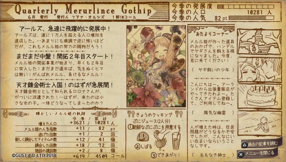 向こうではモバマスでイベント走ってたのでそっちをメインにポチポチやってましたが、メルルの方も結構捗ってプレイが進み、現在は2年目に入りました