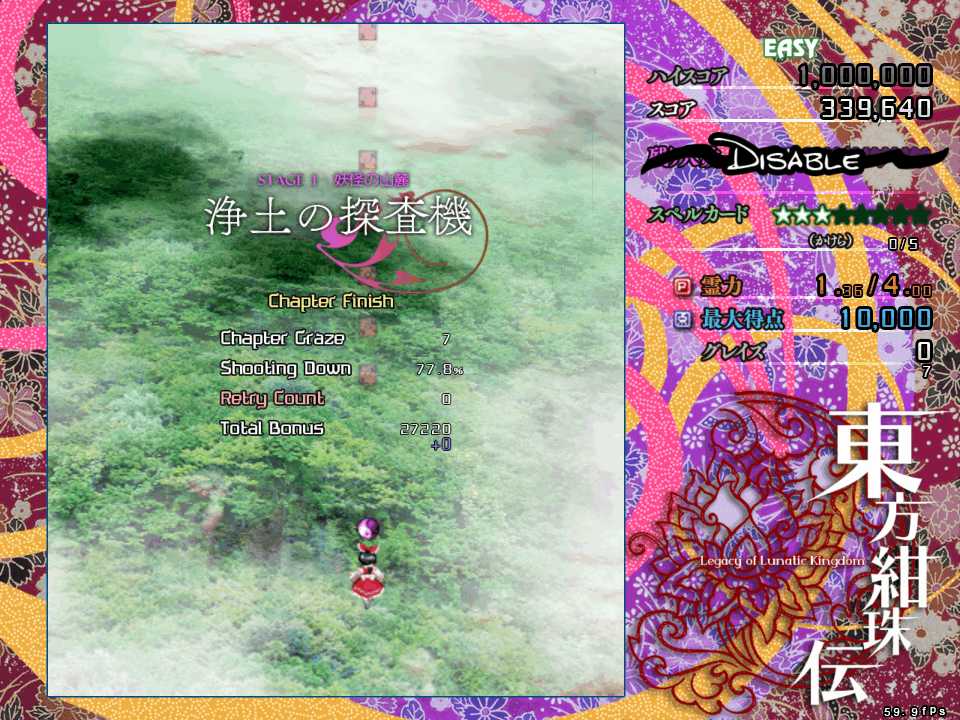 今作の弾幕がいかに狂気じみている(=ルナティック)のかが伝わったと思うので、次はチャプターについてです