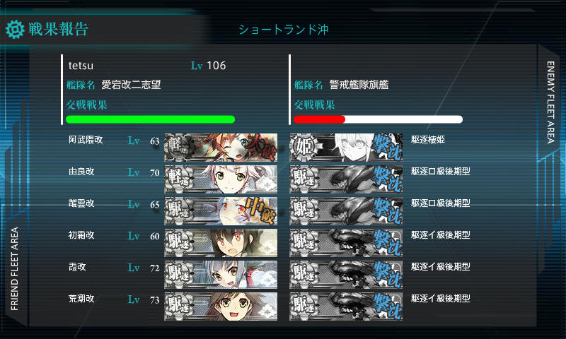 ラストは決戦支援に駆2戦2正空2を出したところ、開幕でかなりの打撃を与えられたのが大きかったです♪