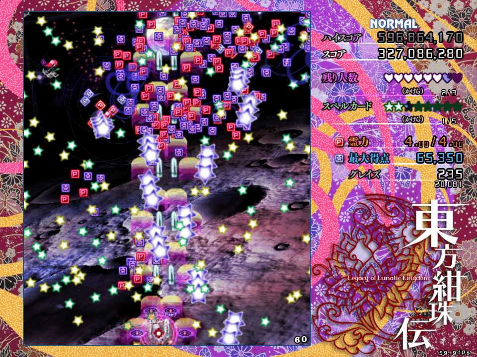 そしてボスのサグメはラストスペル以外、全ての段階で陰陽玉を放って弾幕を張り、自身はほとんど弾を出さないという怠け者です(笑)