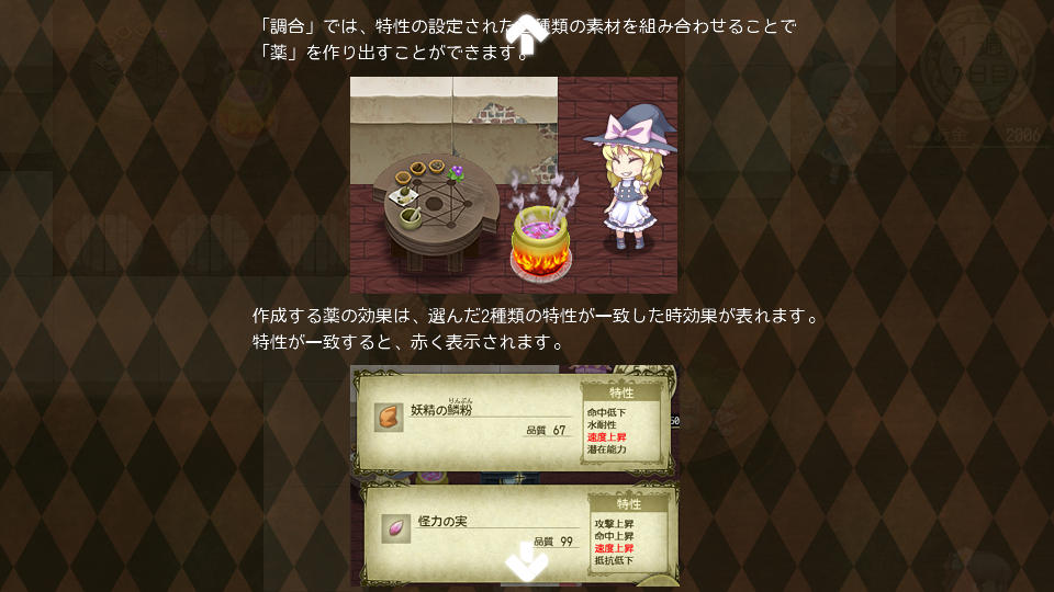 お店では水、酒、緊急薬という素材が無限に入手可能で、何回錬金しても時間が経過しないのは、スケジュールを気にする必要がなくて楽チンですね