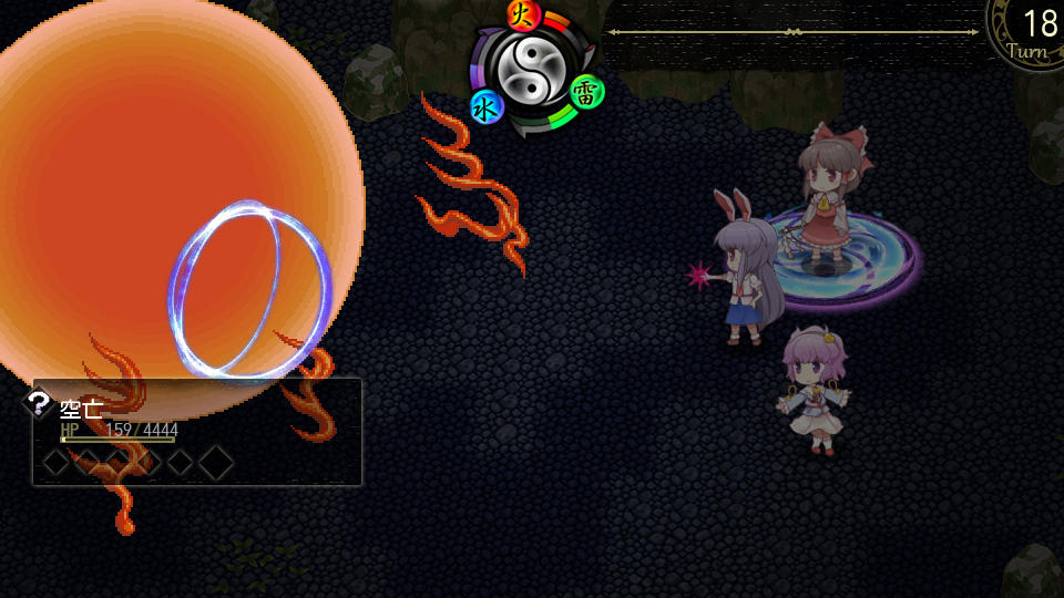 うどんげのスペルカードで一列を一発撃破できるし、敵の大技を喰らっても耐性と魔防を上げてるから全然痛くないし、ほんとに強くし過ぎたかも(^-^;