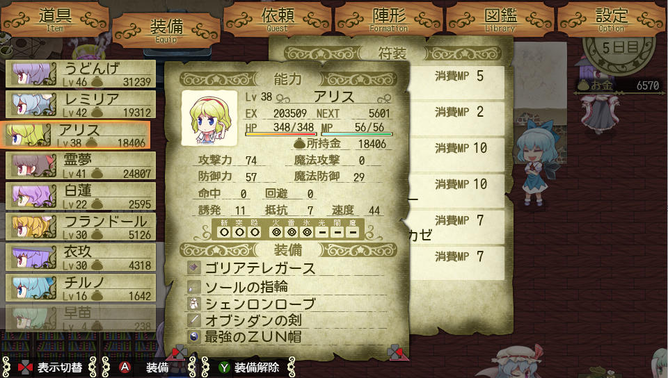 そのため最強のZUN帽を装備させて消費MPを半分にすることで強力な防御技を何度も使えるようにしてあります