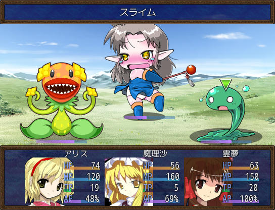 今作の戦闘はタイム制バトルで、APが貯まったキャラからコマンドを選択し、スペルの場合はさらに発動までの詠唱時間を要します