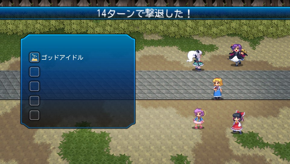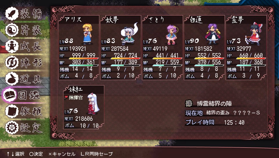 あと、アリスのリトルレギオンはさとりのリフレクトウォールよりも消費MPが少なく、霊夢の二重大結界よりも遅延が少ないため手軽に使えますが、やはりカオスの強力な全体魔法に対しては不安があるので、リフレクトに加え二重大結界も織り交ぜることでリトルレギオンの使用回数を減らしました