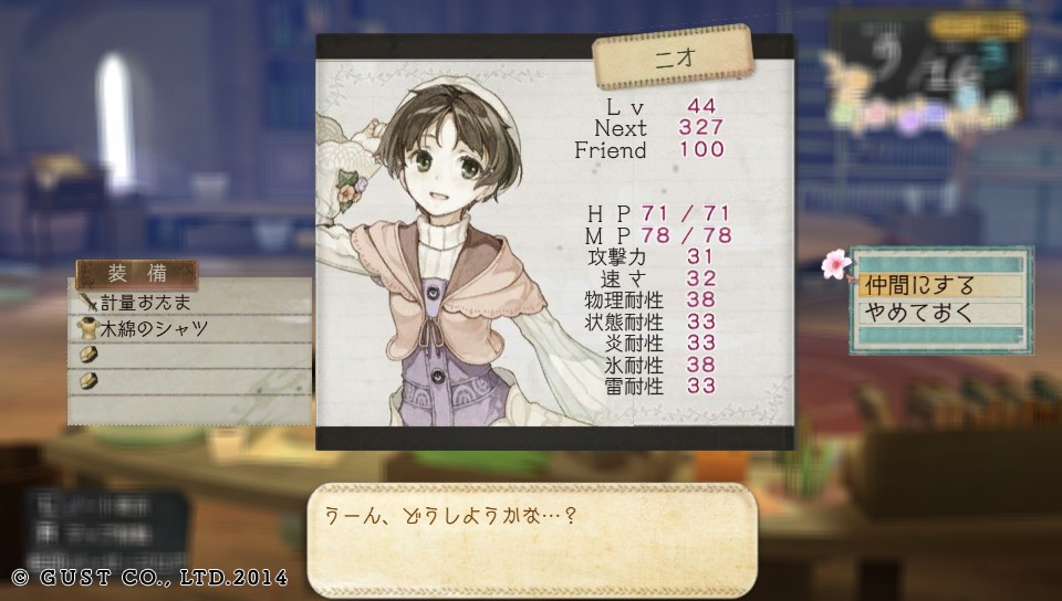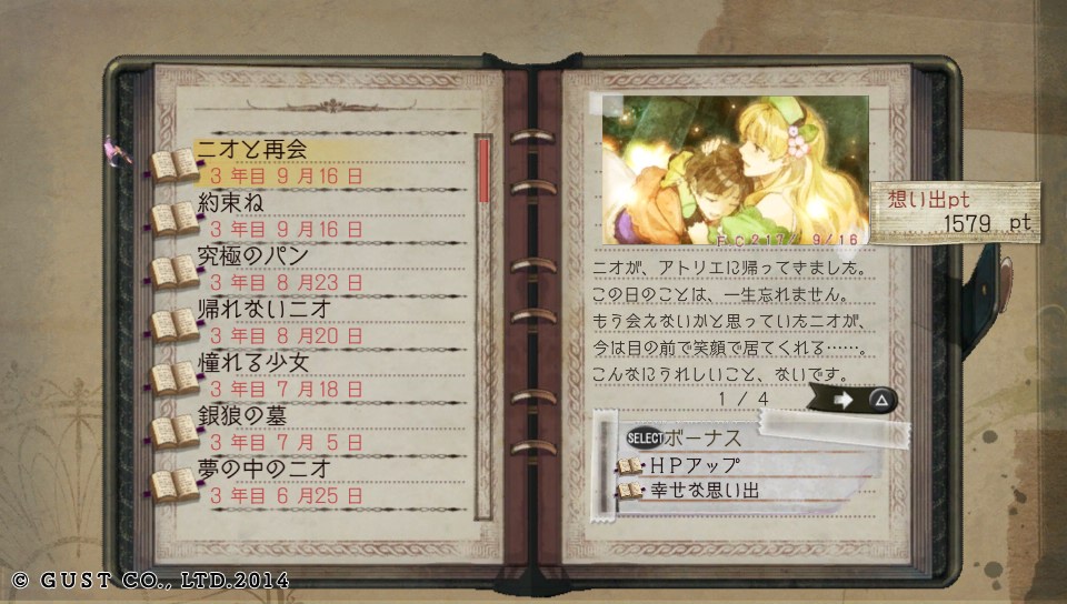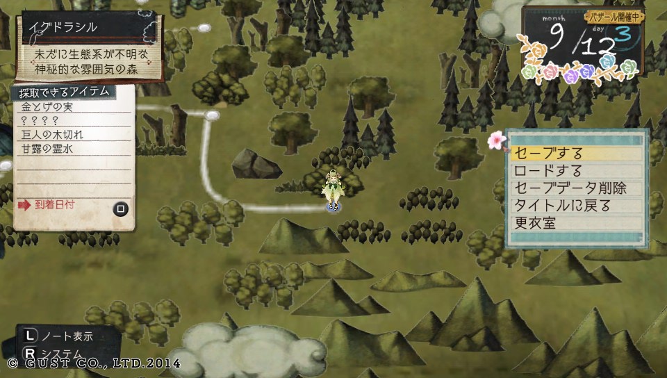 キースグリフとの会話のあとに得られたレシピのアイテムを作成すると、これをニオに渡すためにフィルツベルクのアトリエにニオが現れるのを待つ必要があります