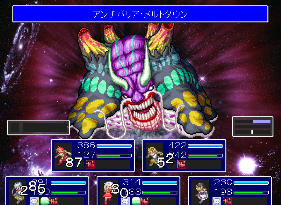 ただ、ここまできたら理不尽な目にあって全滅するのには慣れてしまってるし、そうならないよう全力で戦う術もあるので、とりあえず邪魔なザコ敵は蹴散らしながら進むことはできてます