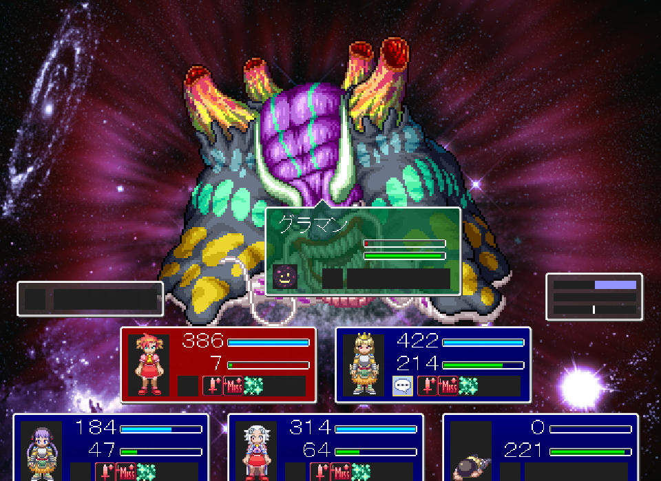 超空間の中ボスを倒したあとまもなく、魔神グラマンとボス戦になります