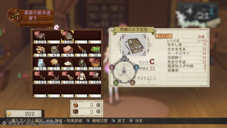 難易度をHardにすると、敵のステータスが少し上昇するほか、調合で作成できるアイテムの個数がわずかに減少したり、ショップでのアイテムの取引価格が高くなるといった変化があります