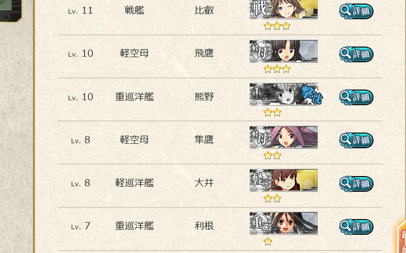 それで3回追撃戦をやって、ゲットしたのは漣、利根、愛宕でした