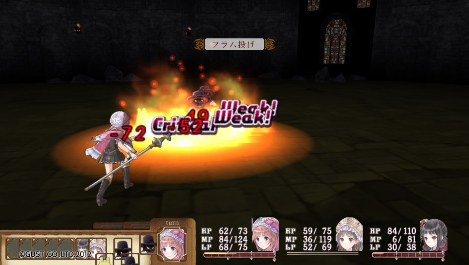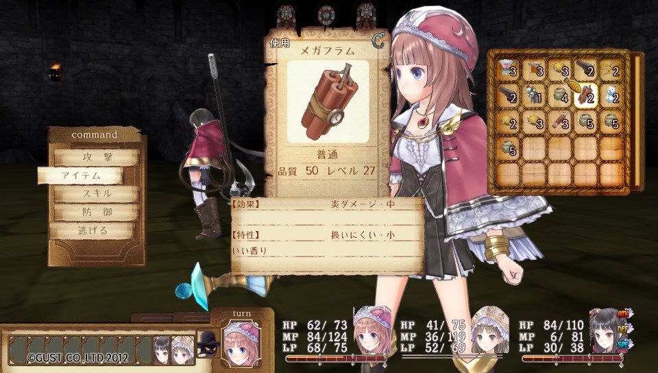 中盤で仲間になるロロナ先生は前作の主人公で、トトリの師匠というだけあり初期レベルが高いだけでなく、戦闘中は通常攻撃が炎属性の範囲攻撃で、錬金術師なのでトトリ最大の武器である調合アイテムも使用可能というハイスペック!