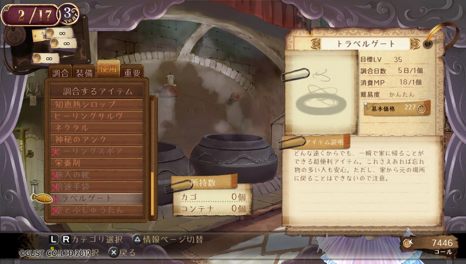 他にも持っているだけで役に立つ道具で調合できてないものがあるので、早く入手したいです