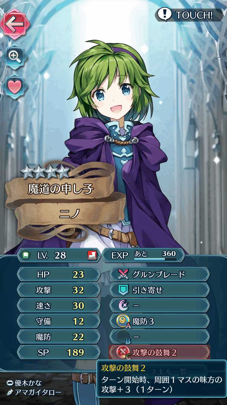 …はい、原作愛を熱く語ってしまいましたが、ニノは見た目どおり打たれ弱い代わりに火力と速さが高く、特に速さの高い敵で無い限り高威力の魔法を2発叩き込めます