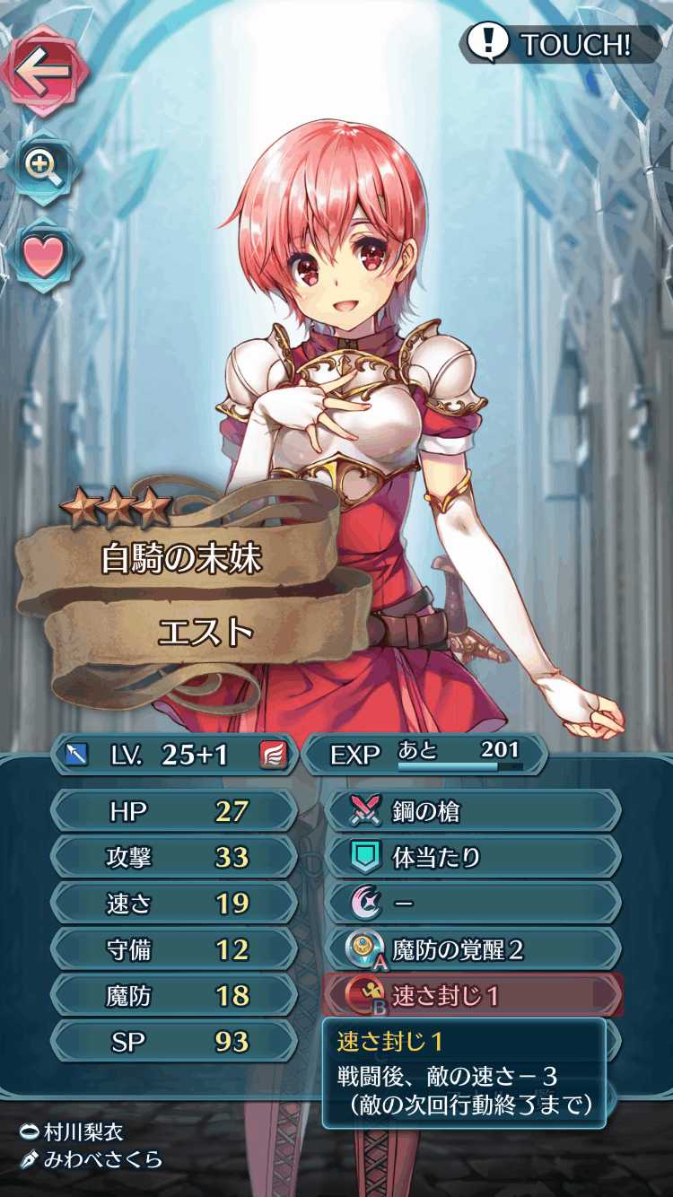 杖使いなので攻撃性能は平凡なんですが、魔防はともかくなぜか防御が異常に硬いため弓兵などの間接攻撃をしてくる敵をおびき出す壁役として活躍します