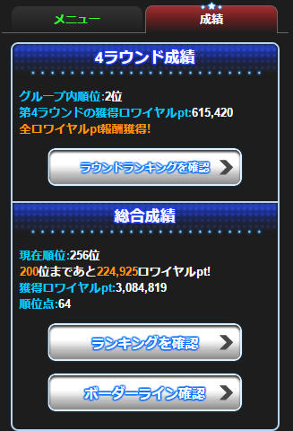 第4ラウンド終了時点では、私は個人256位でした
