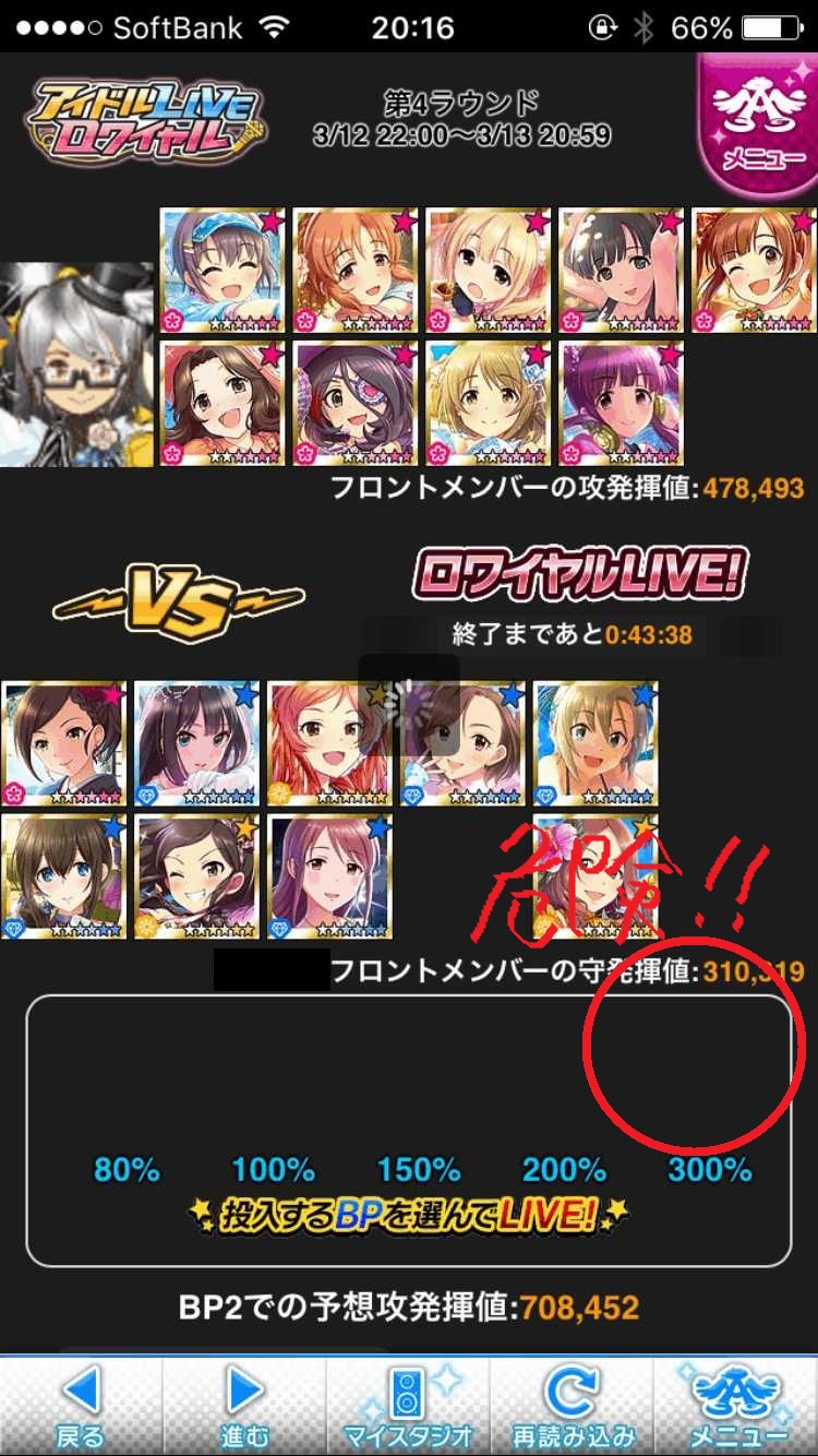 初期のアイロワではそんなことはなかったのですが、途中から仕様変更で投入するBPの確認が無くなったため、1回タップすると即座にLIVEに移るようになりました