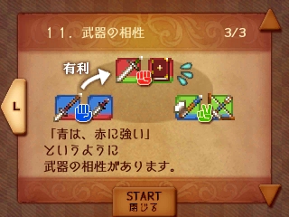 さらに、武器の相性に関して剣や槍という区分ではなく、赤、緑、青属性の概念があることも判明!!