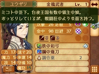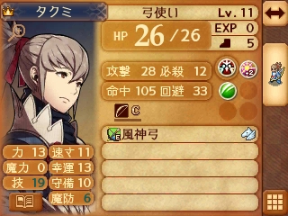 上級兵種なので頼りすぎると経験値がもったいないが、このマップの難易度は非常に高く、弓使い以外のユニットを育成する余裕があんまりないので、少しでも形勢が不利な時はユウギリの弓で射落としてしまおう