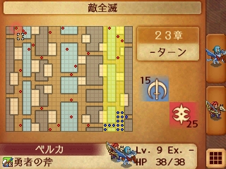 23章は3つの大通りが水路と壁で隔たれた広大なマップで、敵軍はパラディンやレブナントナイト、ダークナイトなど、機動力の高いユニットや魔道系が中心