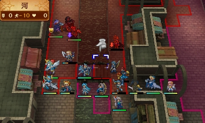 初期配置は自軍が広場の中央で、それを敵軍が取り囲んでいる状態から開始
