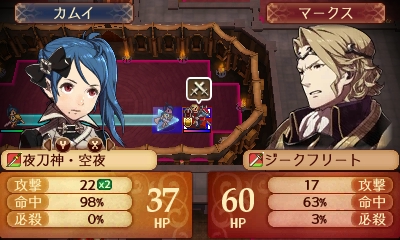 ただ、主人公が順調に育っていれば追撃出せるし、マークスの攻撃を1回や2回受けても死なないはずなので、思った以上にあっさり倒せます
