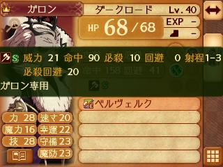 ガロンは必殺値が高いため、支援効果で必殺回避が上昇する相手を防陣でサポートさせるとベターです