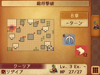 このマップ、白夜ルートだと民家を訪問すると増援が出現しましたが、暗夜ルートでは逆に訪問すると増援を阻止でき、訪問した数によってクリア後の報酬が変化するとのこと
