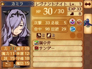 そしてなんと言ってもカミラは自軍にとって初めて加入する上級兵種で、その戦闘能力は初期ステータスの段階で圧倒的!