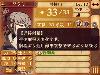 ちなみに敵将のタクミは弓使いにもかかわらず近接攻撃に対して反撃可能で、その攻撃力は30