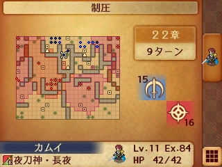 この章のクリア条件である制圧は、従来のFEと異なり主人公でなくても可能なので、一人を残して他のユニット全員で向かってきた増援に特攻し、経験値を稼げるだけ稼いだらクリアしました