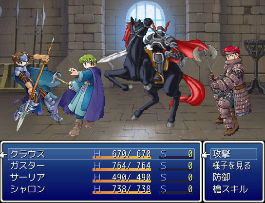 闘技場をうまく利用すれば、次のステージをクリアするのに十分過ぎるほどLVが上がるし、資金もがっぽり儲かって強力な装備をそろえられるので、ゲームとしての難易度はだいぶ下がります