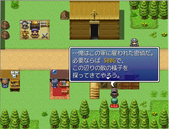 拠点では武具屋・魔法屋・道具屋といった売店があります