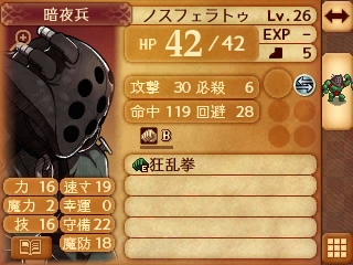 外伝マップですが、出現する敵はノスフェラトゥのみなので大したことないと思われますが、全員が何かしらのスキルを持っており、中には待ち伏せや○○殺し系、カウンターなど、対処を間違えると命取りになる強力なスキルもあるので、相手がどんなスキルを持っているのか逐一確認しながら戦う必要があります
