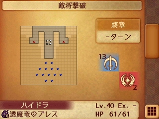 27章のクリア条件は敵将撃破で敵将のハイドラは自軍の初期配置からほど近い場所にいるんですが、自軍とボスの間に大量のザコ敵が配置されており、しかも初期配置が肉薄しているため1ターン目から大乱戦となります