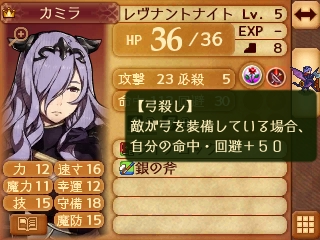 そしてもう一つの違いはボスのカミラが強化されていることで、ステータスがわずかに上がっているほか、弓殺しのスキルを身につけているため弓による特攻を狙うのが難しくなってます