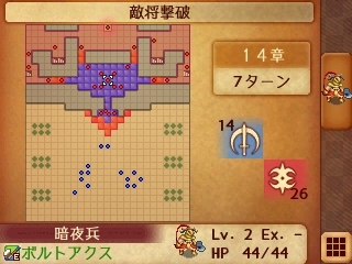 余談ですが遭遇戦でLV上げしてたところ、キルソード持ちから必殺受けてツバキが昇天したのでリセットしました(;д;)