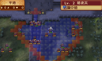 エリアが2つに分かれているほか、後から出現する城内の敵を合わせるとその数は50を超えるため、シナリオ前半では最大の長丁場、山場になります
