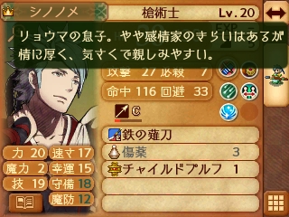 この方法で最初にシノノメを引き寄せ、リョウマでシノノメを仲間にしたらすぐにチャイルドプルフで上級兵種に