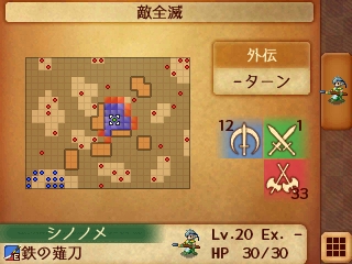 勝負は最初の1,2ターンで、打つ手も限られるため何度かリセットによる試行を繰り返して正解を見つける作業になりますが、シミュレーションRPGとしてはこういうのも面白いものです