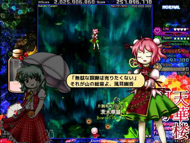 BGMは華扇のテーマで、聴き覚えがないからオリジナルかと思ったんですが、よく思い返すと東方深秘録に収録されている曲で、私ゲームはやったことないんですけどサントラは持ってたんでした(^^;