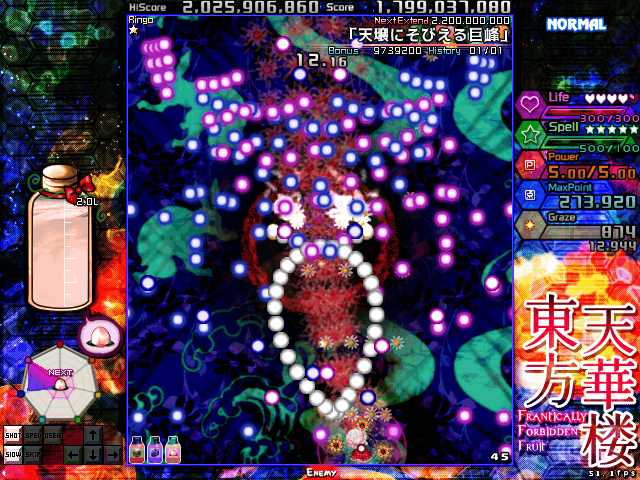 BGMももちろん天子のテーマで、6面ボスには悪いけどこっちが今回のラスボスってくらいにテンションが上がります!