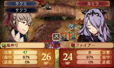 向かってくるカミラはタクミの弓で一撃でしとめられるので問題ないし、ここはマークスだけでなく敵軍の全滅を狙ってみましょう