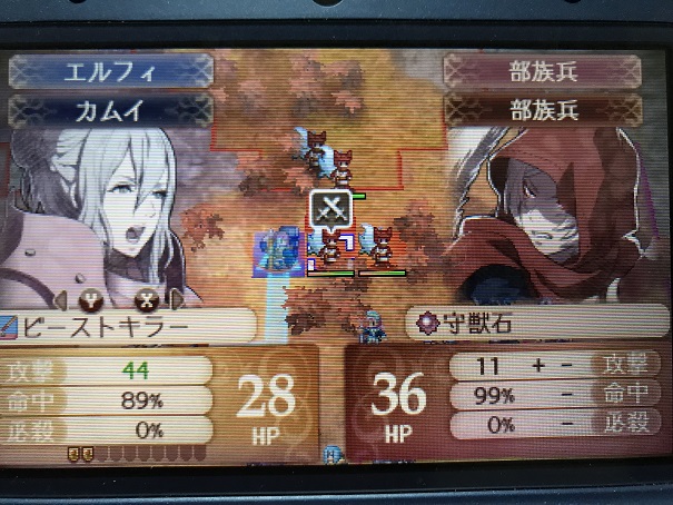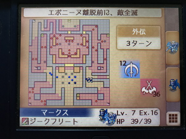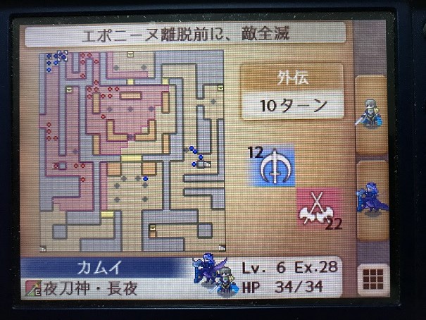 この時反撃で撃破すると意味がないのだが、敵は弓装備でカミラやベルカが切込みの際間接攻撃を仕掛けると反撃でほぼ確実に撃破されるので、一撃で仕留められるよう囮役の反撃で敵のHPを削ってやる必要がある